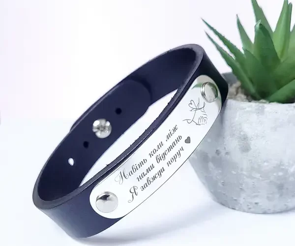 • Шкіряний браслет з гравіюванням — це більше, ніж просто аксесуар. Це поєднання стилю, емоцій і символізму. Його можна подарувати близькій людині або придбати для себе як талісман, що нагадує про важливі моменти життя. Такий браслет стане щоденним нагадуванням про ваші почуття, натхнення та впевненість у власному шляху.
